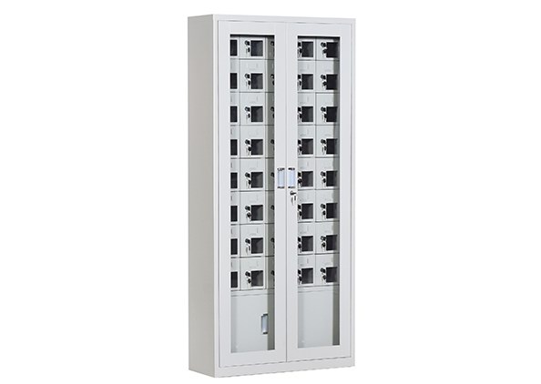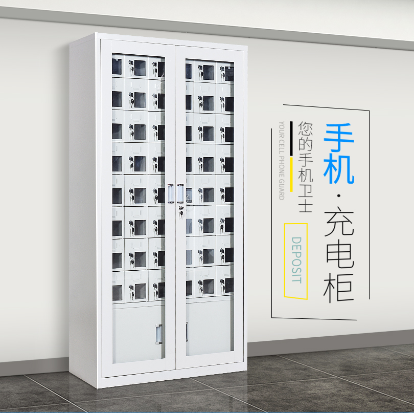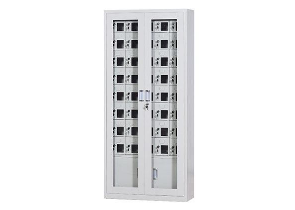 手機(jī)保密柜正面為對開金屬邊框玻璃大門,便于觀察柜內(nèi)情況,堅(jiān)固透亮,美觀大方。